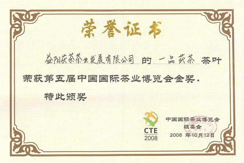 第五屆中國國際茶博會(huì )金獎