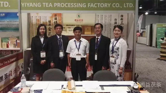 下午,在拉斯維加斯國際會(huì )展中心南大廳舉辦了首場(chǎng)湖南黑茶美國品鑒會(huì ),益陽(yáng)茶廠(chǎng)有限公司作為此次活動(dòng)的重要嘉賓及推介方,引爆全場(chǎng)。出席此次活動(dòng)的有世界茶業(yè)博覽會(huì )主辦方、益陽(yáng)市委市政府領(lǐng)導、美國企業(yè)代表、華人華僑代表、湖南代表團、以及參展商等三百余人,共同見(jiàn)證湖南黑茶精彩亮相的這一時(shí)刻。益陽(yáng)茶廠(chǎng)有限公司代表整個(gè)湖南黑茶企業(yè),向參會(huì )嘉賓贈送“湘益”牌益生源茯茶和速泡茯茶,并在展會(huì )現場(chǎng)全程進(jìn)行黑茶品鑒、產(chǎn)品推介、及茯茶茶藝表演,滾動(dòng)播放湘益茯茶沙畫(huà)中英文視頻,引發(fā)全場(chǎng)喝彩。公司領(lǐng)頭羊2015茯茶作為品鑒會(huì )的主推產(chǎn)品及活動(dòng)用茶,吸引了眾多外賓朋友的目光,爭相品飲,嘖嘖稱(chēng)贊。