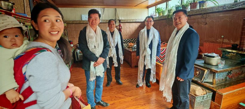 考察團一行隨即前往山南市隆子縣調研,與隆子縣委書(shū)記李寧、縣委常委、統戰部部長(cháng)嘎瑪旦增等領(lǐng)導進(jìn)行了會(huì )談。趙穎君一行在縣委常委、統戰部部長(cháng)嘎瑪旦增、副部長(cháng)索朗巴珠的陪同下,翻越了三座海拔超5000米山峰,深入隆子縣斗玉珞巴民族鄉、玉麥鄉、扎日鎮等鄉鎮及村,不僅學(xué)習了蔵區同胞的愛(ài)國主義思想、情懷與精神,而且考察了茶葉加工廠(chǎng)、了解藏區本地小眾茶的生產(chǎn)、區內區外茶消費情況等,與此同時(shí),還走進(jìn)藏民同胞家中,代表益陽(yáng)市委統戰部贈送“湘益”茯茶、表達了益陽(yáng)人民的熱情厚愛(ài)與對藏區人民的美好祝福。